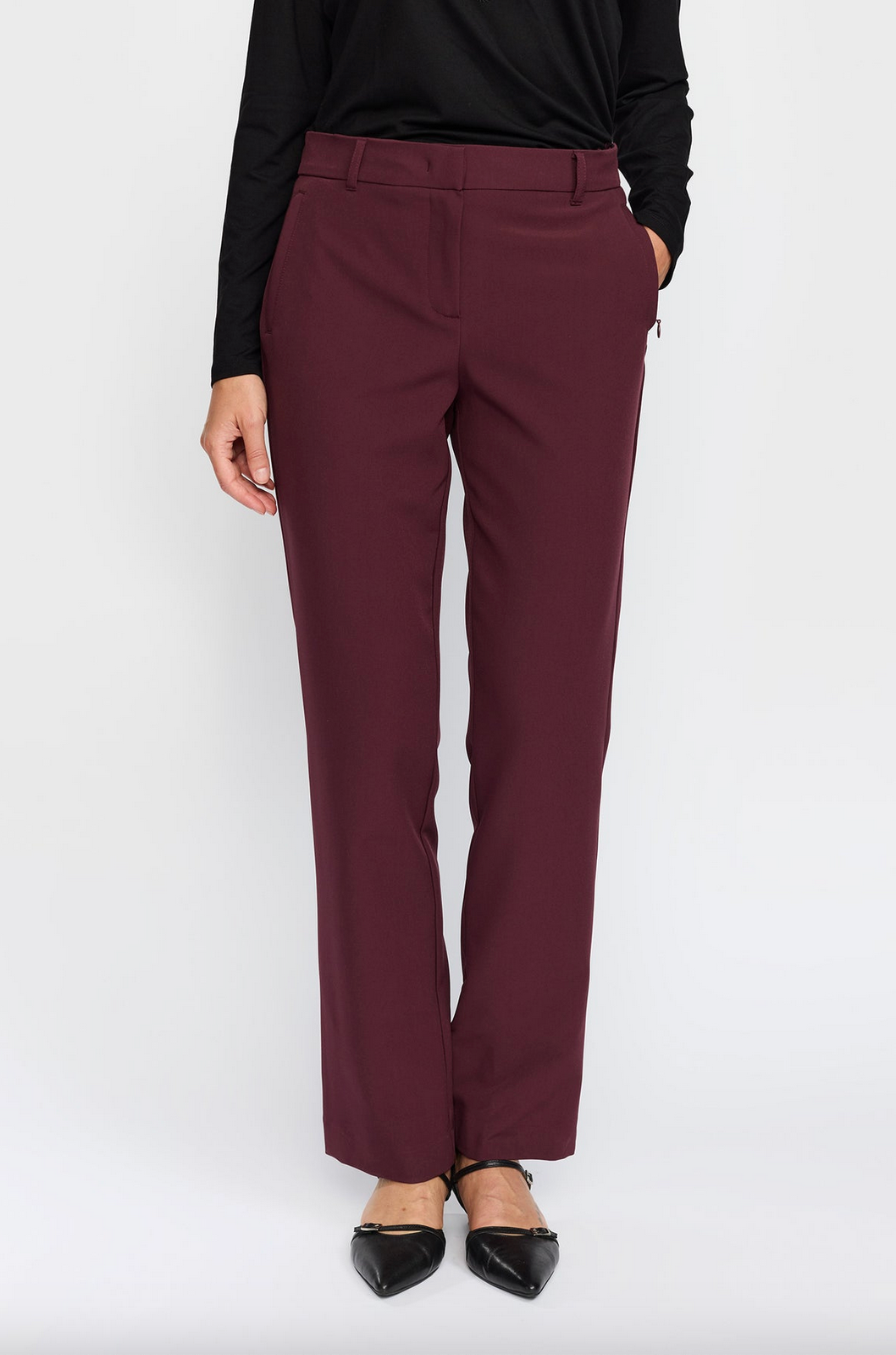 Olja bukse fra 2-Biz i burgunder "Winetasting" – rett passform, normal i størrelsen. Style med Ilia blazer for et komplett sett!