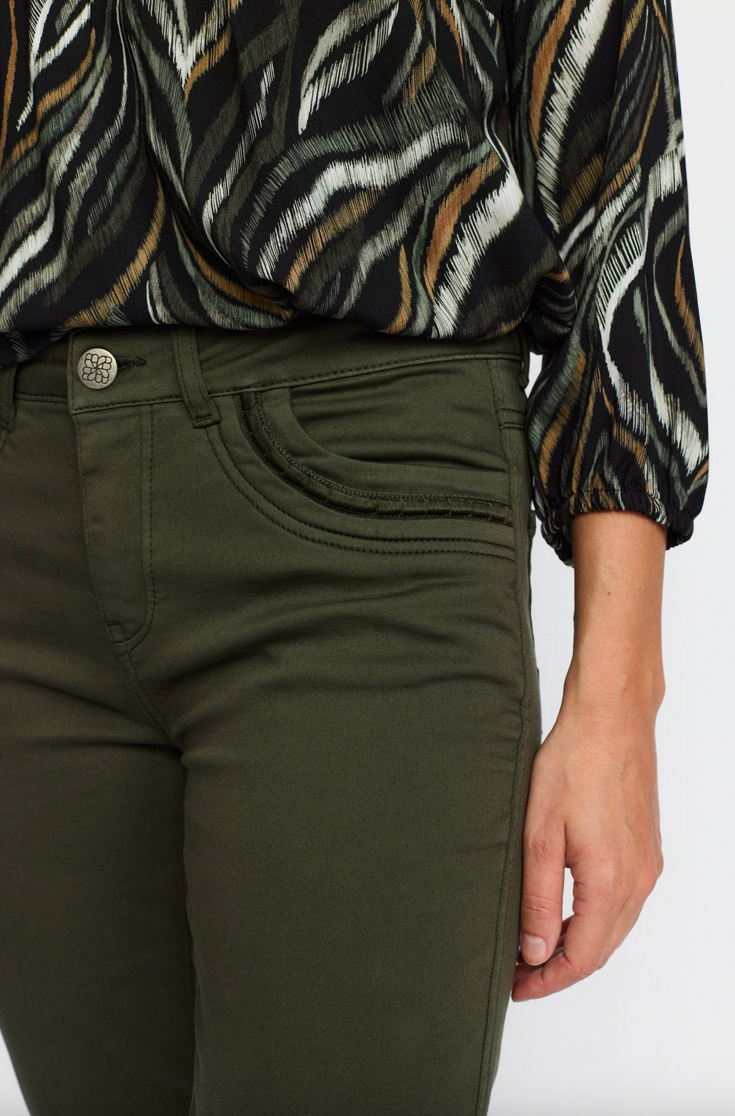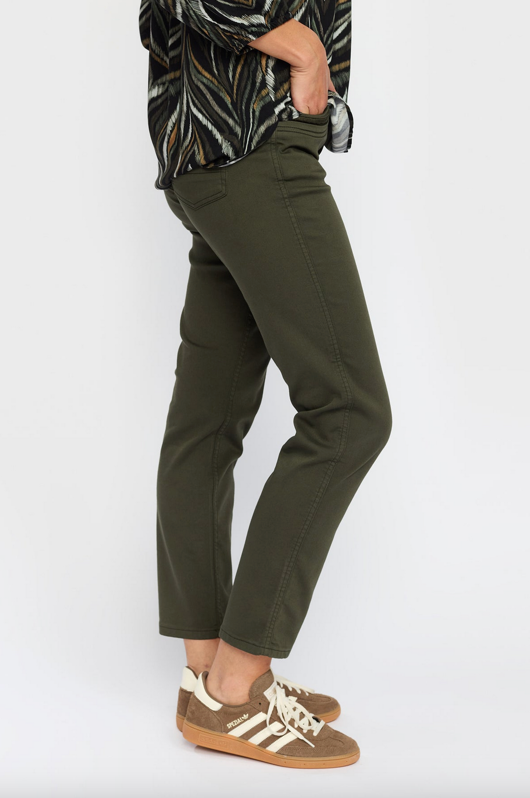 Berit er en grønn klassisk bukse fra 2-Biz. Buksen har rette ben og er svært myk i kvaliteten med god stretch. Høyt liv og flatterende lommeplassering. Oppleves som normal i størrelsen.