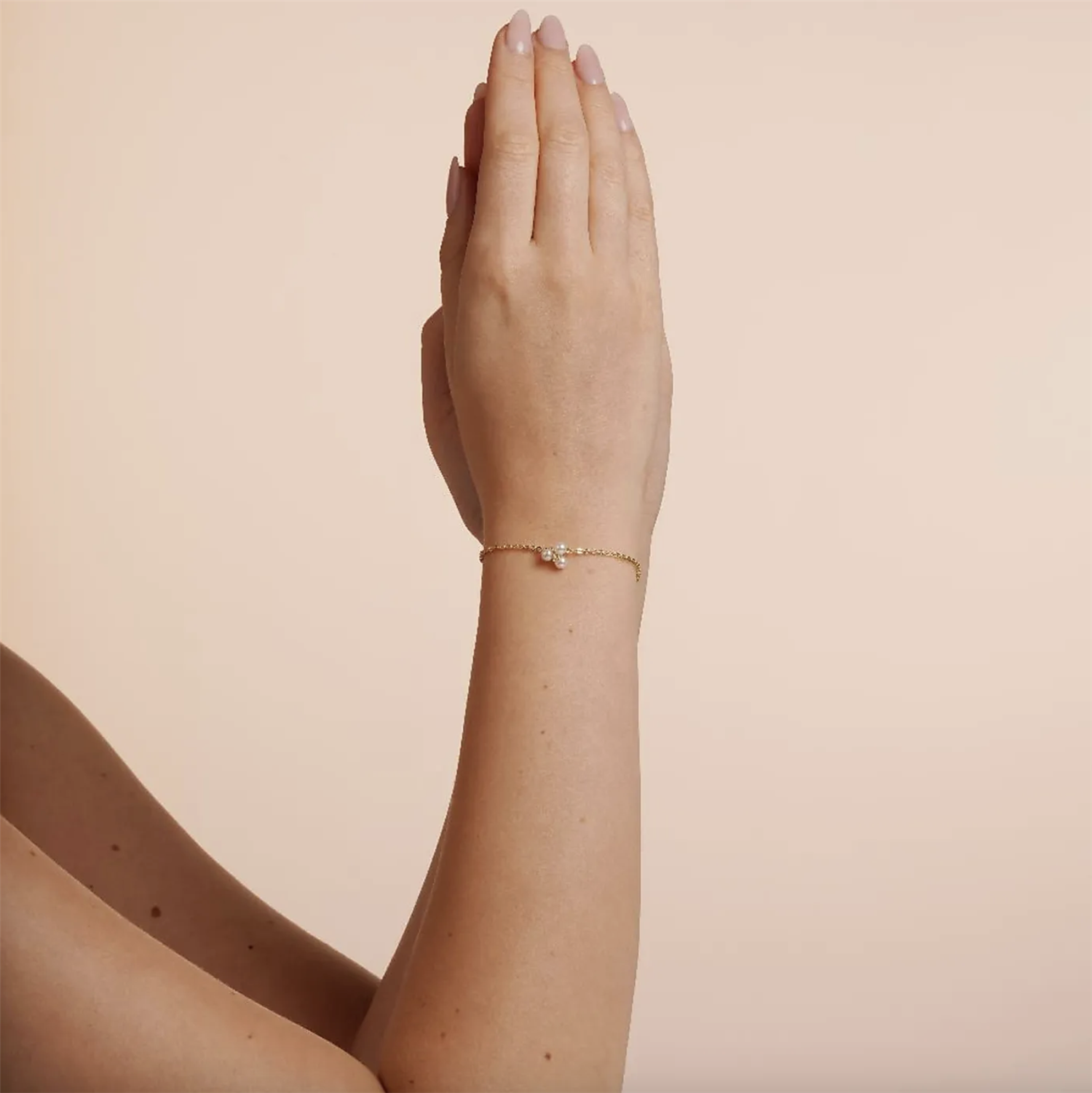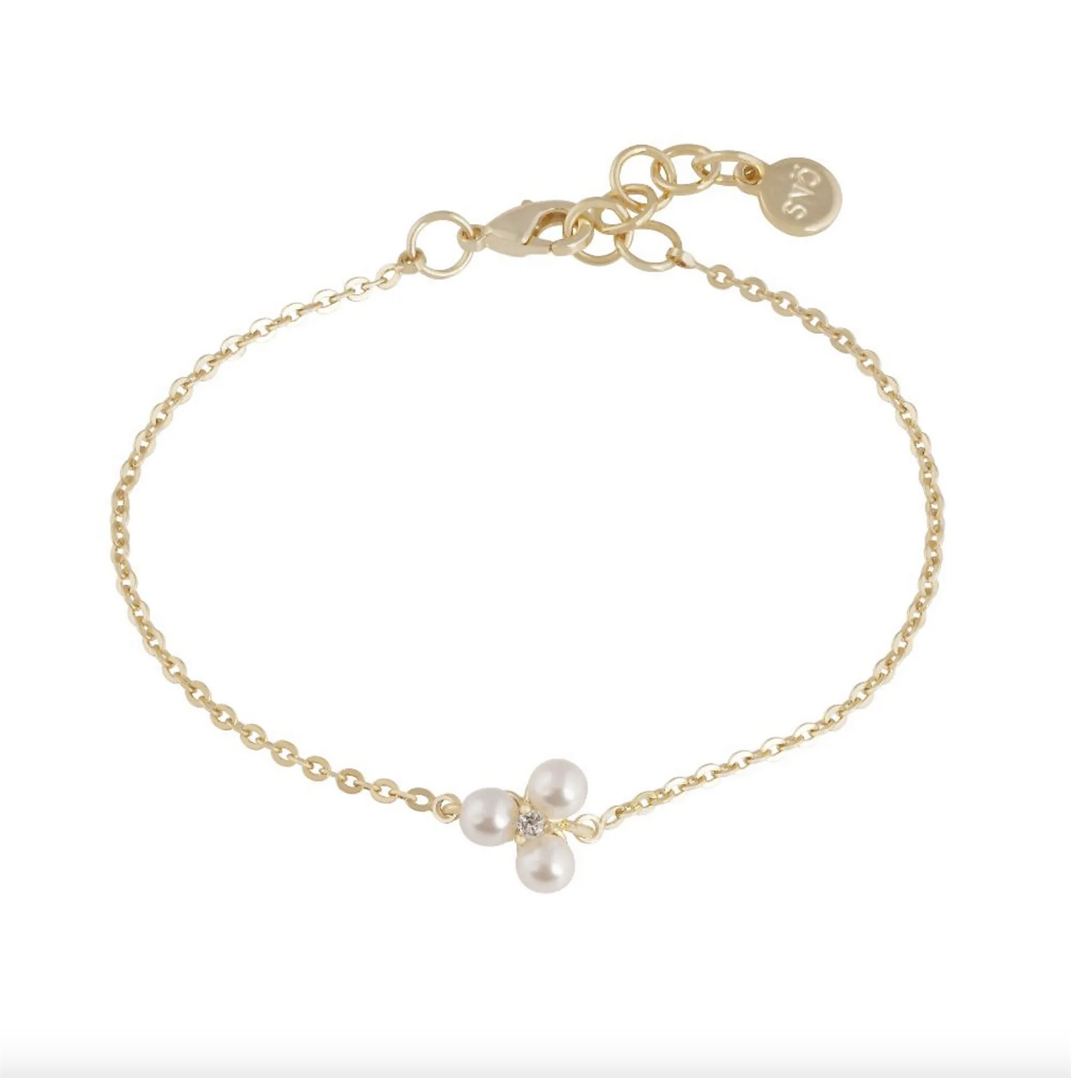 Armbånd med tre perler i midten, elegant design med et klassisk uttrykk.