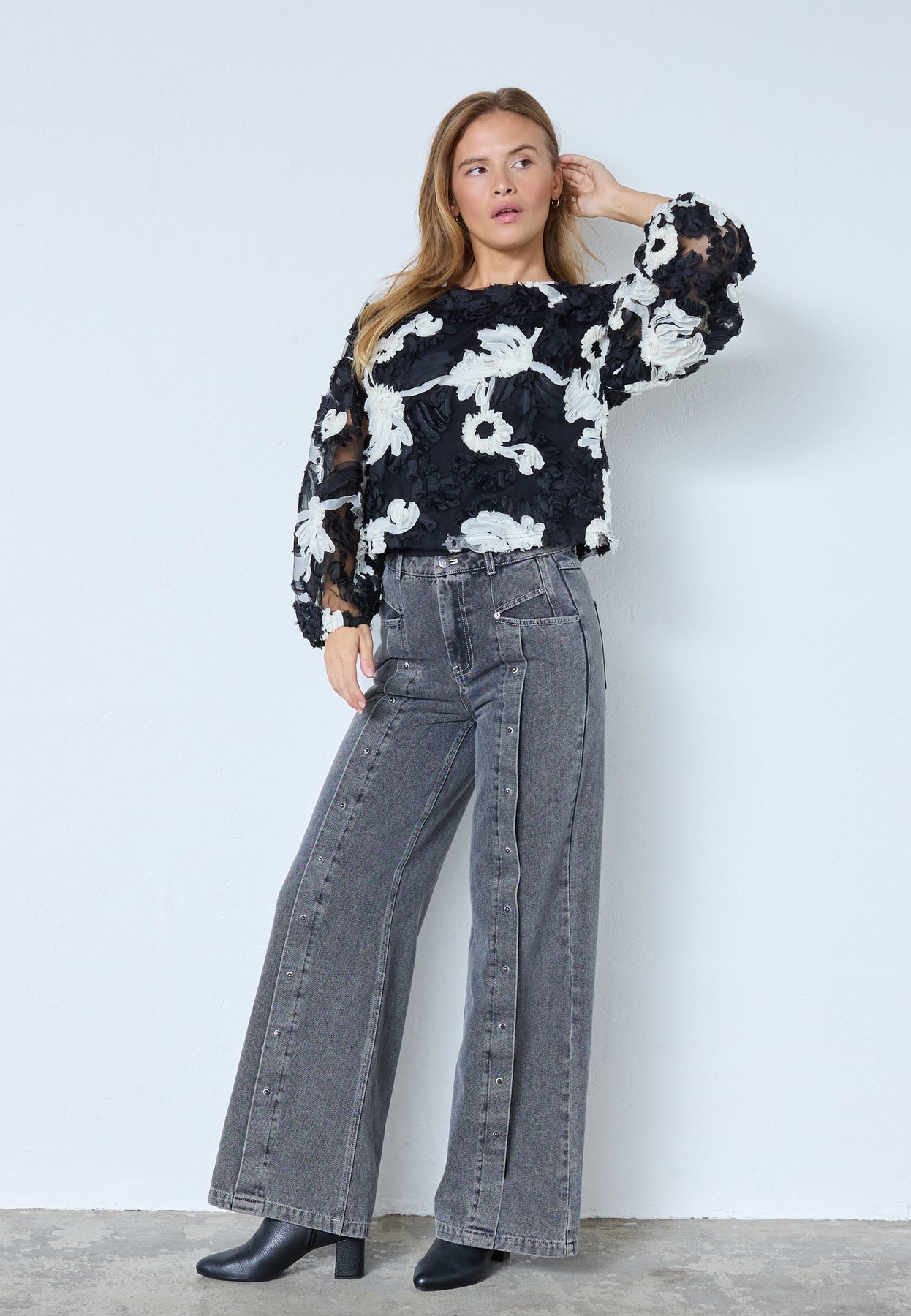 Fleur Fluff Blouse fra Co’Couture er en drømmende og feminin bluse som gir ethvert antrekk et løft. Den har et luksuriøst, lett teksturert stoff med fluffy blomsterdetaljer som skaper et eksklusivt og romantisk uttrykk.