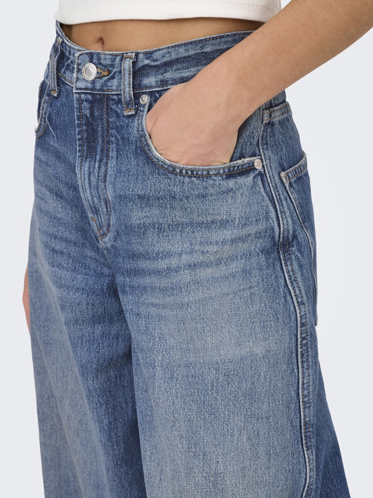 barrel jeans dame, only jeans, høy midje jeans, loose fit jeans, mørk denim jeans, trendy jeans 2025, høstmote dame, ONLY Taylor jeans, jeans med løs passform