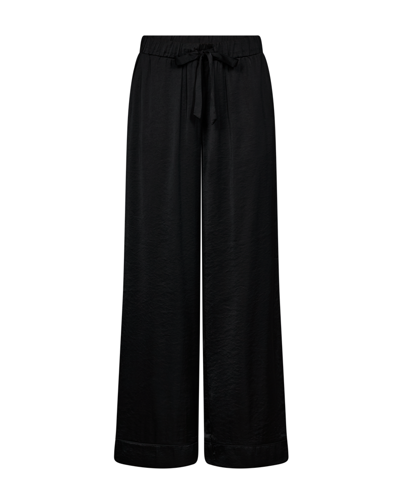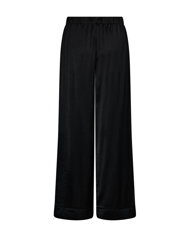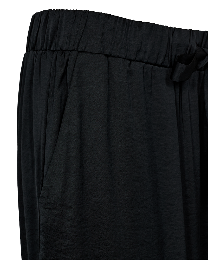 Oppdag den perfekte buksen for både hverdagsbruk og spesielle anledninger! FQDove satengbuksen fra Freequent kombinerer en eksklusiv satengfinish med en avslappet og flatterende passform. Med sitt vide ben og elastiske midje med justerbar snøring, får du både stil og komfort i ett og samme plagg.