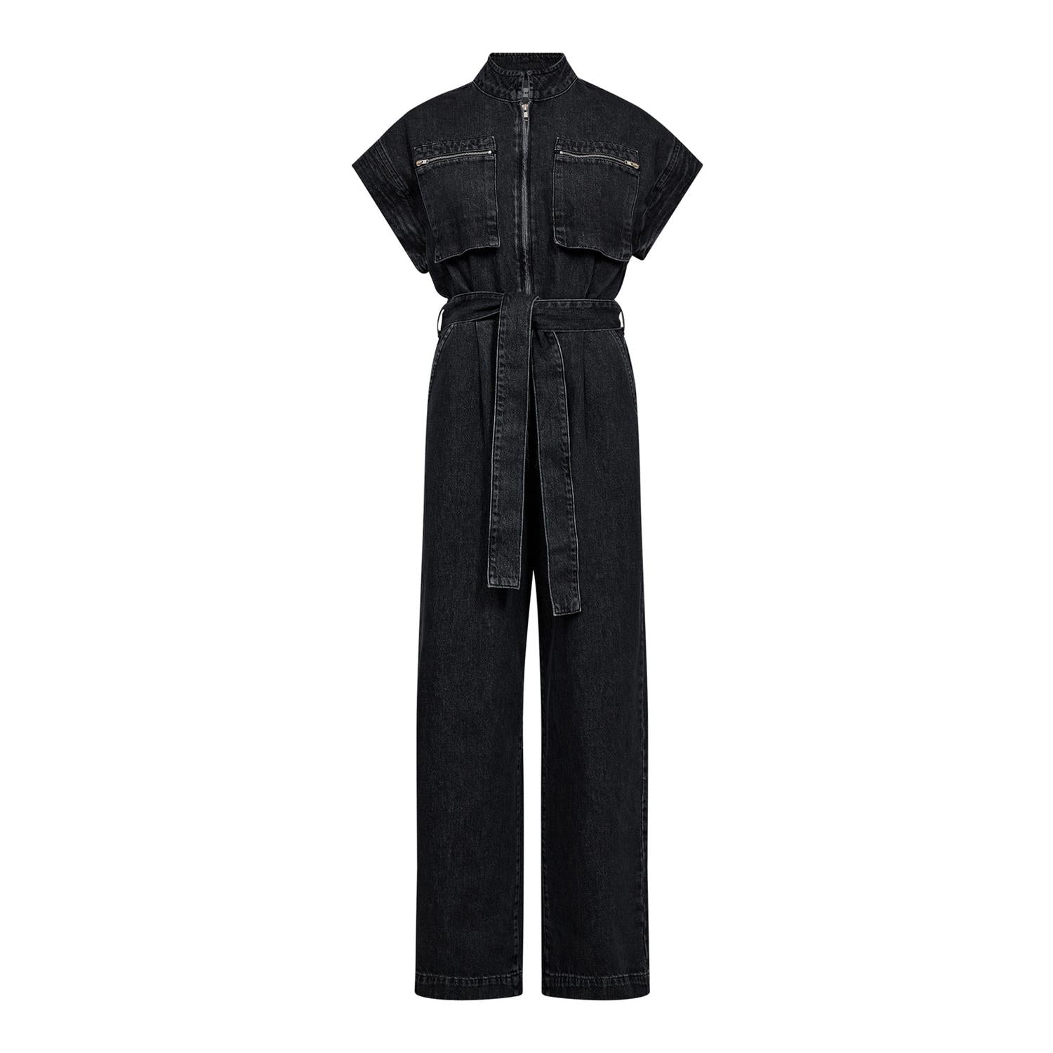 Stilren sort denim jumpsuit fra Co’Couture i 100 % bomull. Glidelås i front, belte i livet og moderne passform.