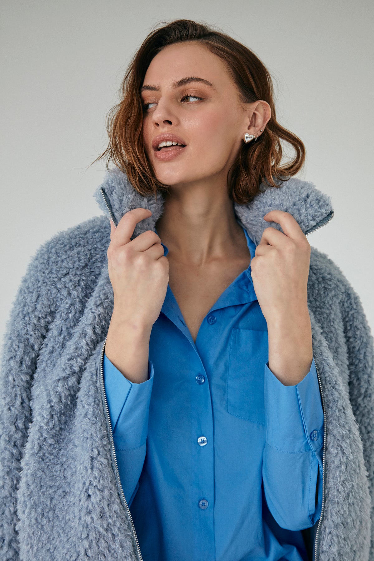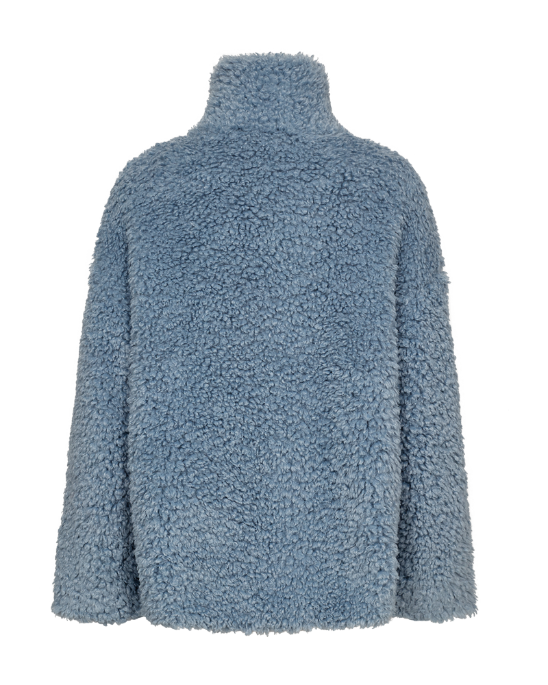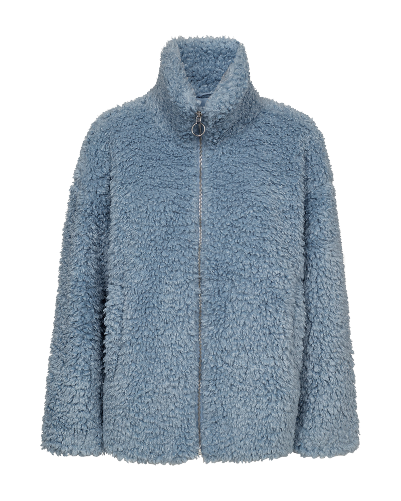 FQsleepy er en nydelig og myk teddyjakke fra Freequent. Jakken har regular passform med lommer foran, høy hals og glidelåslukning. Veldig lett og behagelig. Like fin over en lekker kjole som til hverdags med jeans. Normal i størrelsen.
