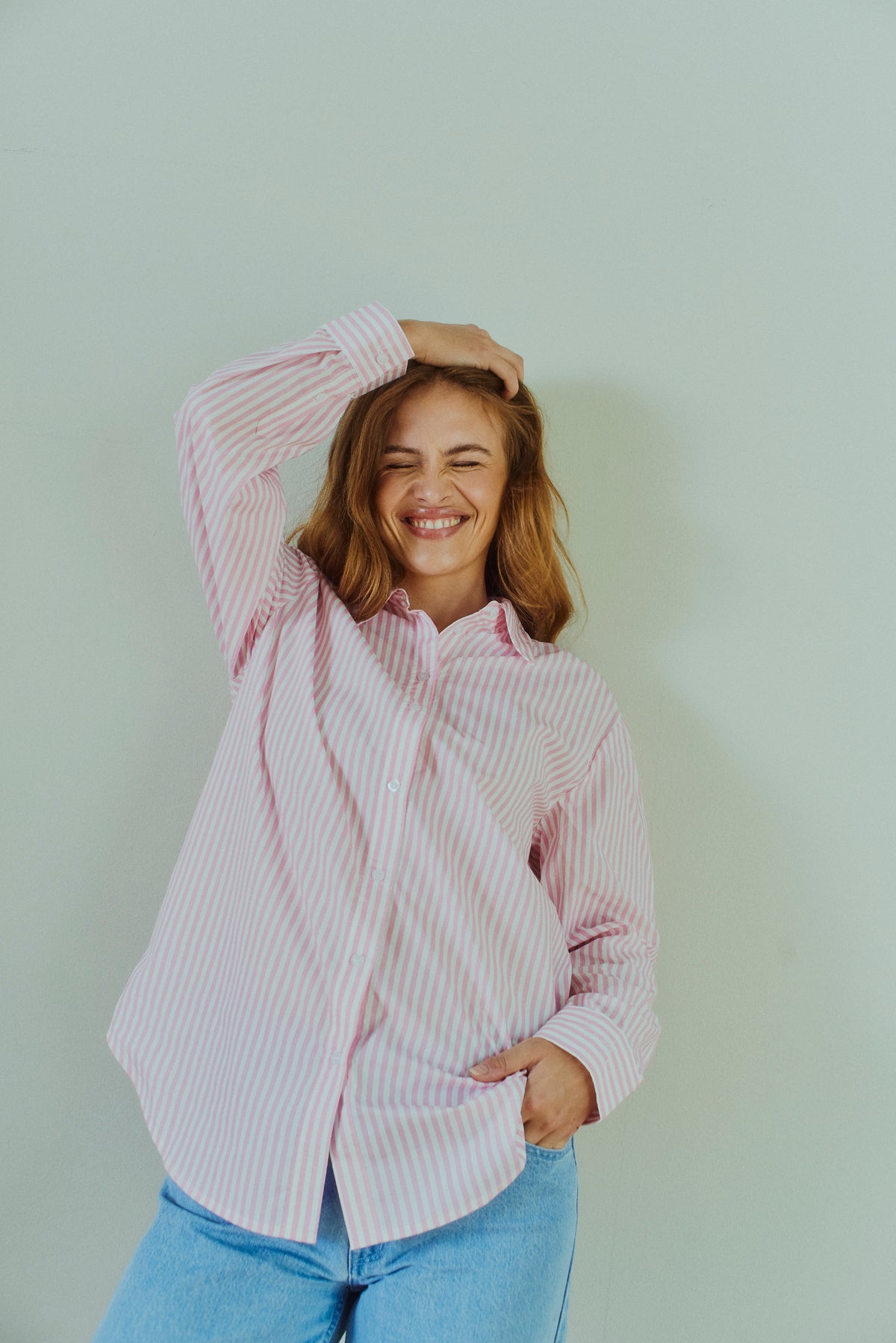 Men legg til delikate rosa striper – og du får en garderobefavoritt med personlighet.
