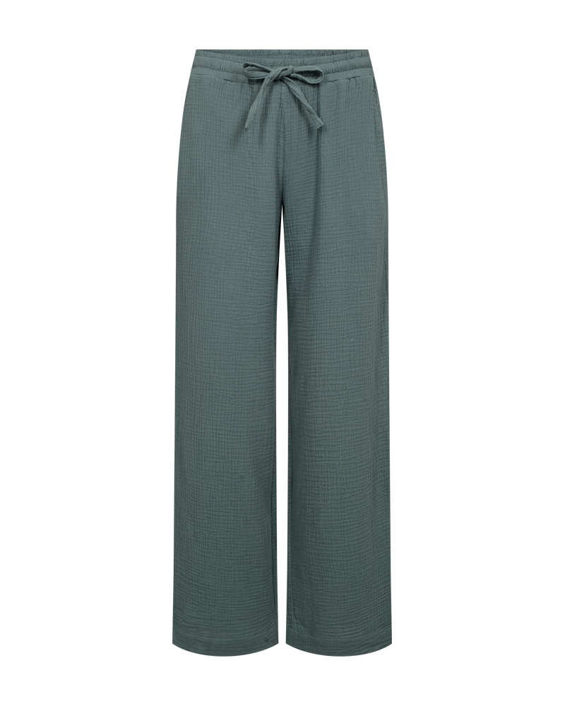 Freequent FQesmingo Pants Dark Forest – Grønn bomullsbukse med vide ben