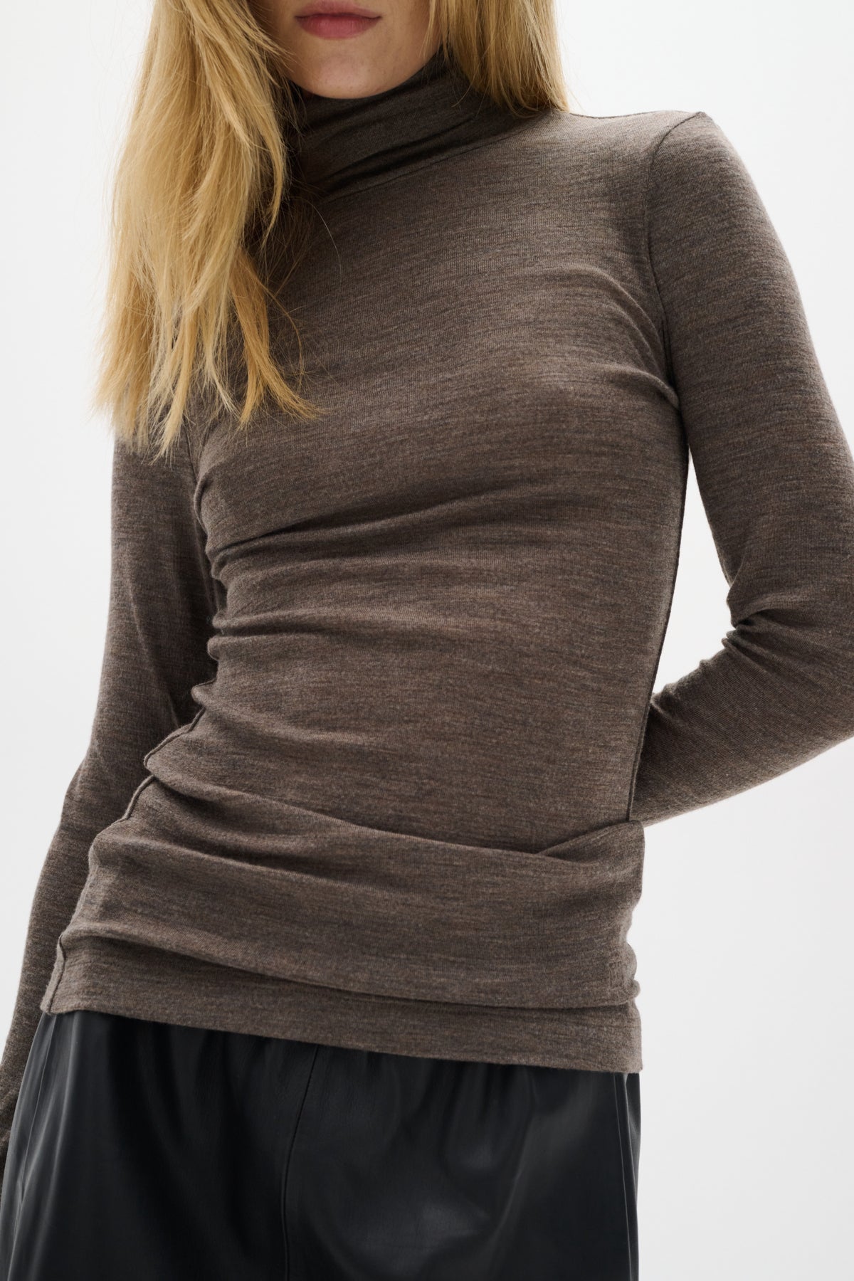 FangIW Rollneck fra In Wear er en klassisk pologenser i ull med regular passform og naturlig god stretch, som gir både komfort og bevegelsesfrihet. Den myke rullekragen holder halsen varm og tilfører et tidløst, elegant uttrykk.