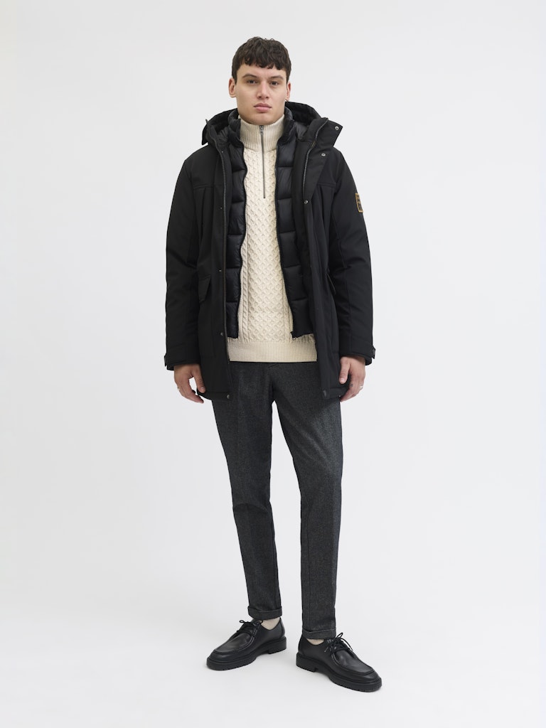 Denne klassiske strikkegenseren fra Jack & Jones er et perfekt baseplagg for høst og vinter. Med sitt tidløse kabelmønster, høy hals med glidelås og regular passform, kombinerer den stil og komfort på en enkel måte – nå i en lyst, delikat gråbeige farge som passer til alt.