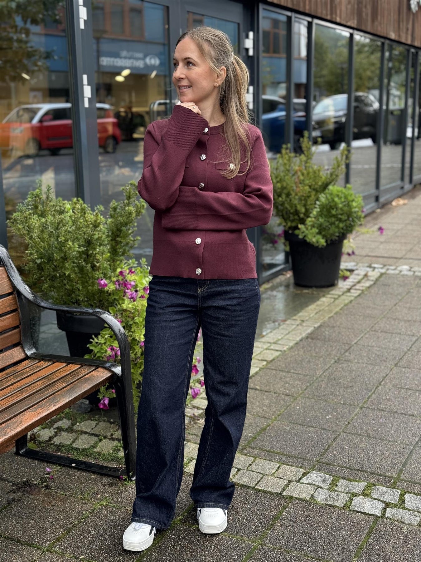 Bruk den åpen over en enkel t-skjorte eller bluse, eller knepp igjen for en mer polert look. Perfekt til både jeans, skjørt eller dressbukser – og helt nydelig under en lang kåpe.