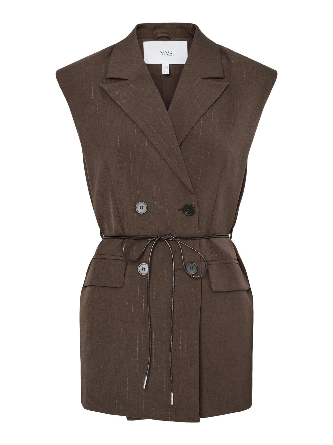 YASSHIMMA Waistcoat fra YAS – Lang Dobbeltspent Vest i Chocolate Brown