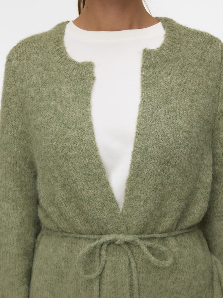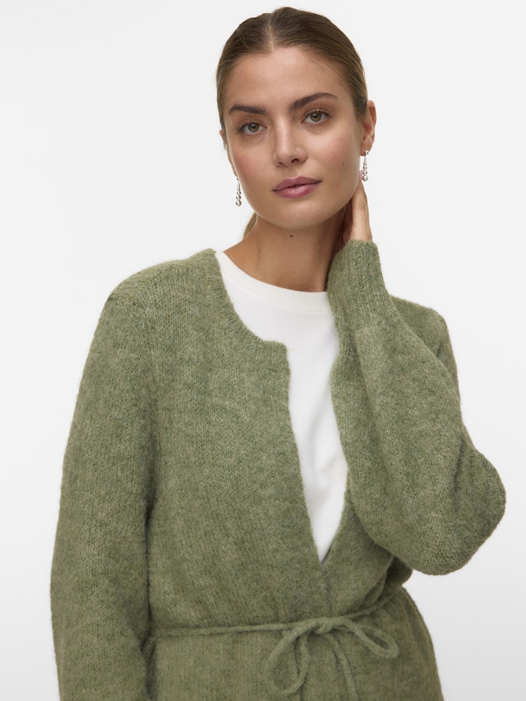 I den dype Rifle Green-fargen får cardiganen et naturlig og sofistikert uttrykk som enkelt kan kombineres med både lyse og mørke plagg. Med rund hals, lange ermer og løstsittende passform, kan cardiganen knytes i livet for en flatterende silhuett. Perfekt som ekstra lag over en smart outfit eller for å tone ned et mer pyntet antrekk med komfort og varme.