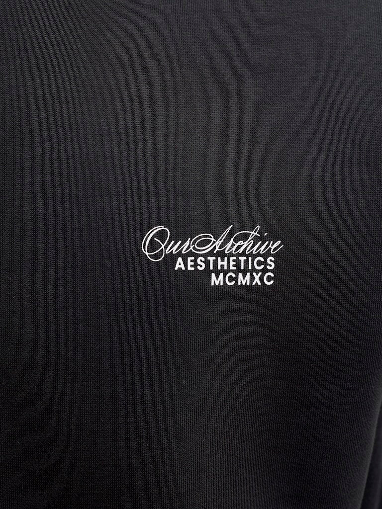 Jack & Jones JJROAR Hoodie - Svart Med Print - Økologisk Cotton & Resirkulert Polyester, Loose Fit