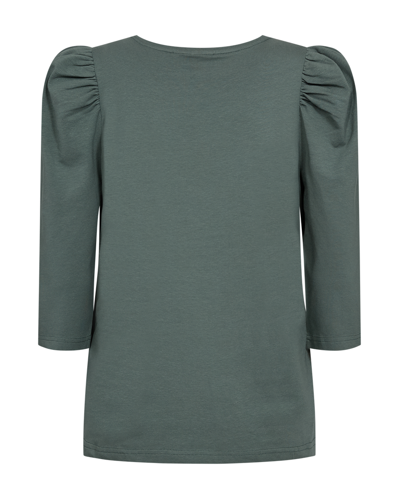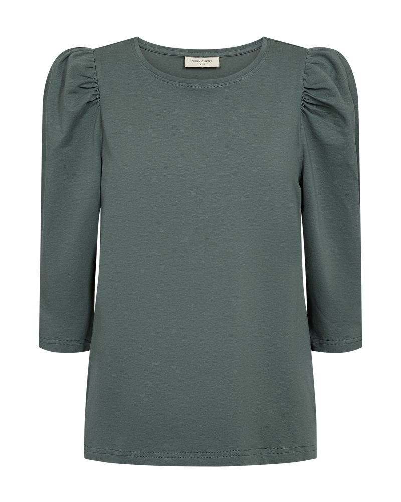 Denne FQFenja T-skjorten fra Freequent kombinerer klassisk stil med feminine detaljer. Med 3/4 lange ermer og puff-effekt, får t-skjorten et delikat og elegant preg samtidig som den beholder en klassisk, normal passform.