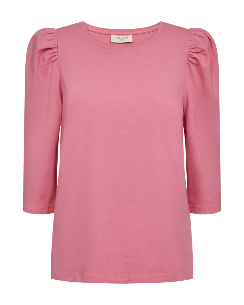 Denne FQFenja T-skjorten fra Freequent kombinerer klassisk stil med feminine detaljer. Med 3/4 lange ermer og puff-effekt, får t-skjorten et delikat og elegant preg samtidig som den beholder en klassisk, normal passform.