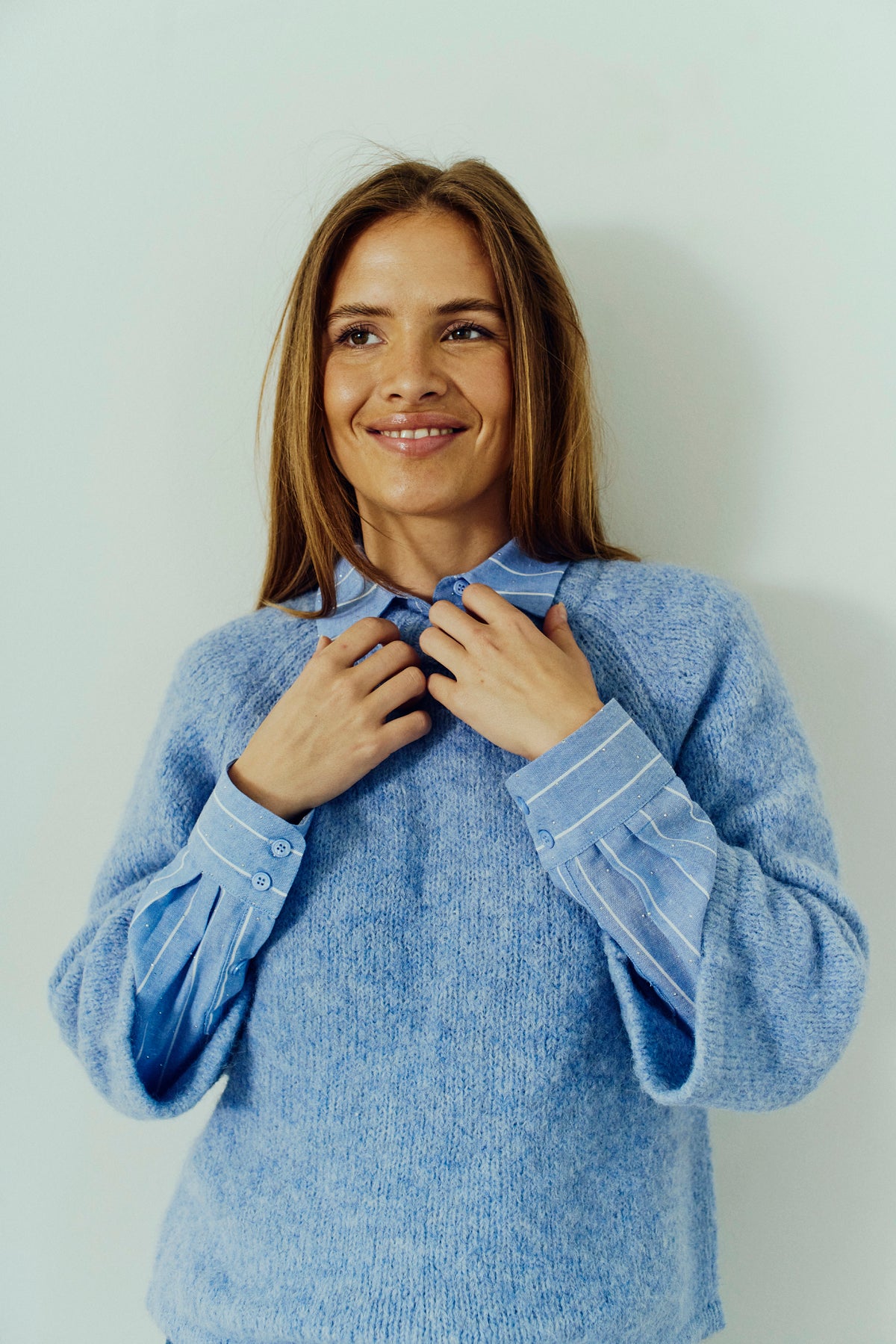 Den melerte lysblå fargen Vista Blue gir antrekket et friskt og lett preg, og gjør genseren enkel å kombinere med både jeans, dressbukser og skjørt. Et komfortabelt og anvendelig plagg du vil bruke igjen og igjen.