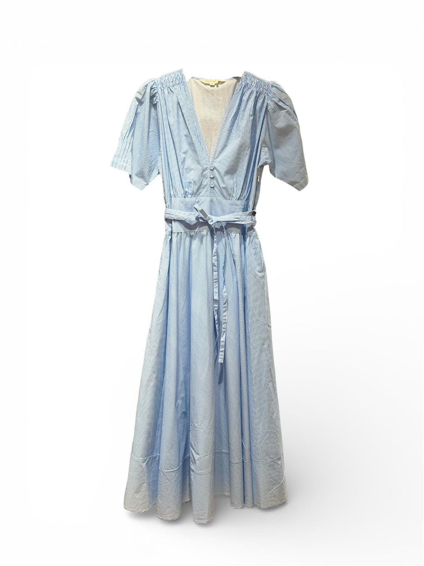 Maria Kjole – Hvit med Blå Striper i Bomull | Miss Maya