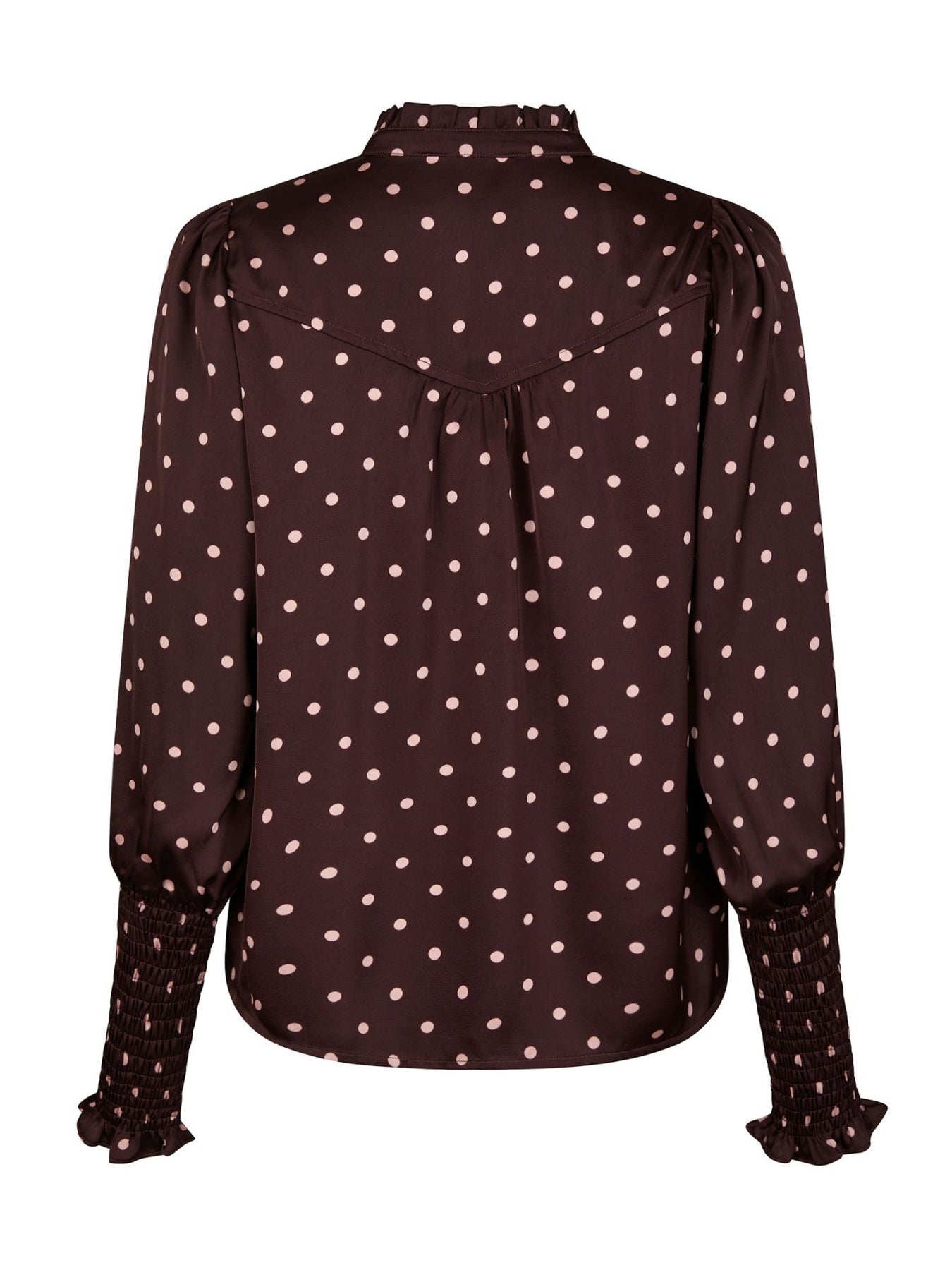 Neo Noir – Camisa Dot Blouse i burgunder med lyserosa prikker