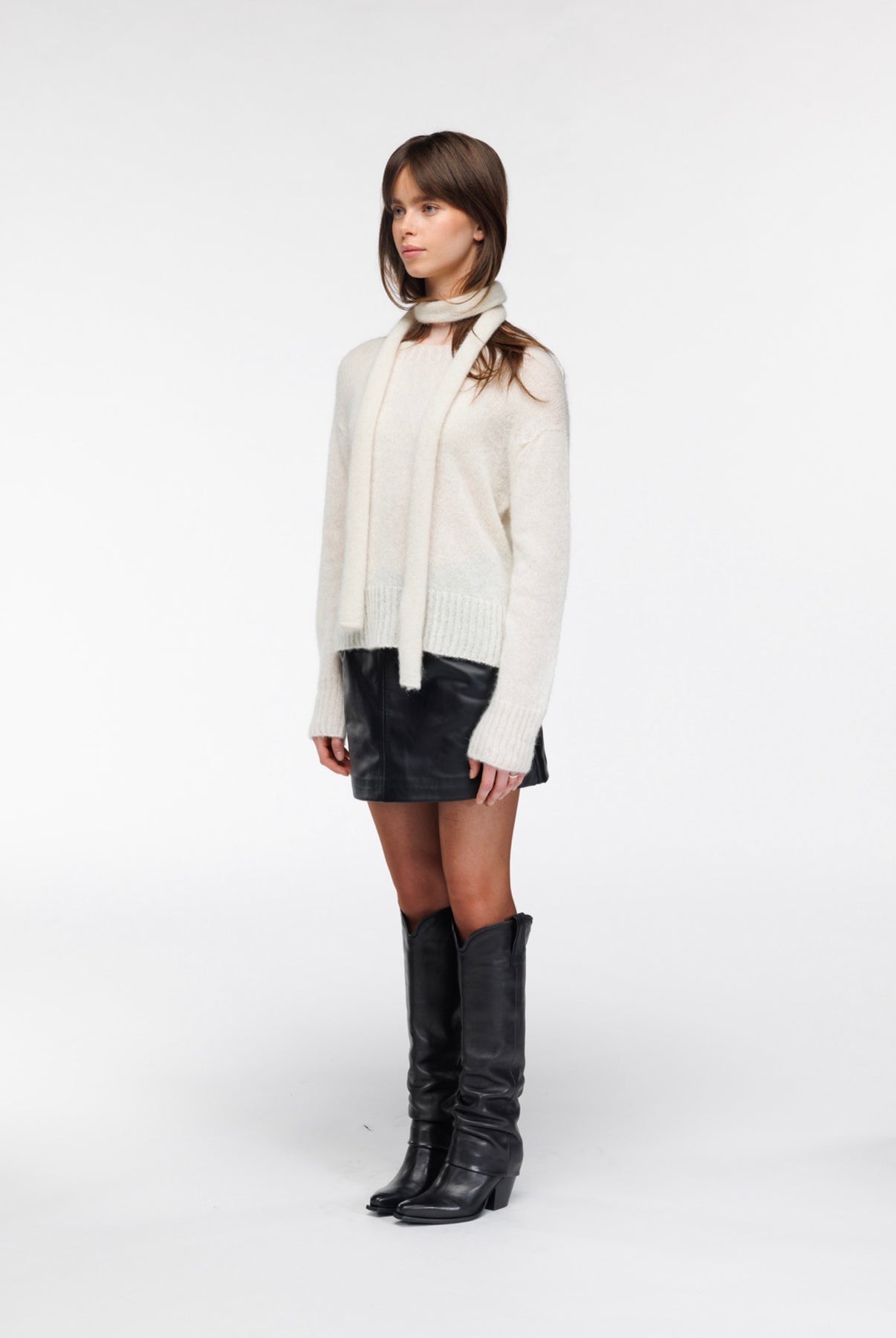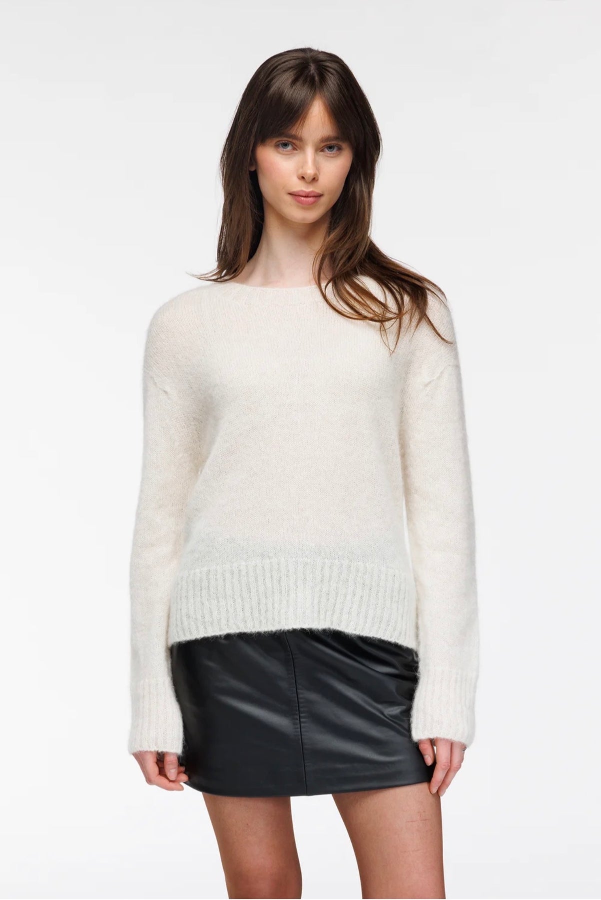 Genseren er laget av en eksklusiv blanding av baby alpakka, superkid mohair og mulberry silke, noe som gir en helt unik følelse - silkemyk, lett og lun uten å klø. Den har rund hals og en normal passform som gjør den enkel å style både alene og over skjorte eller kjole.