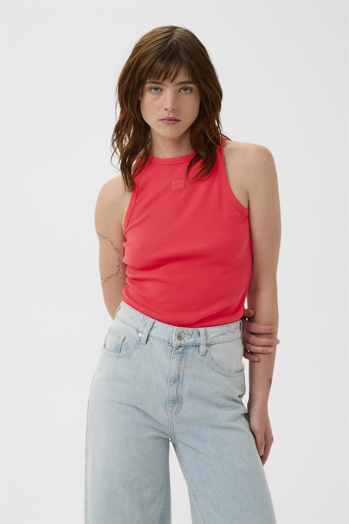 Gestuz GZDrew Logo Tank 2.0 – rød ribbet topp