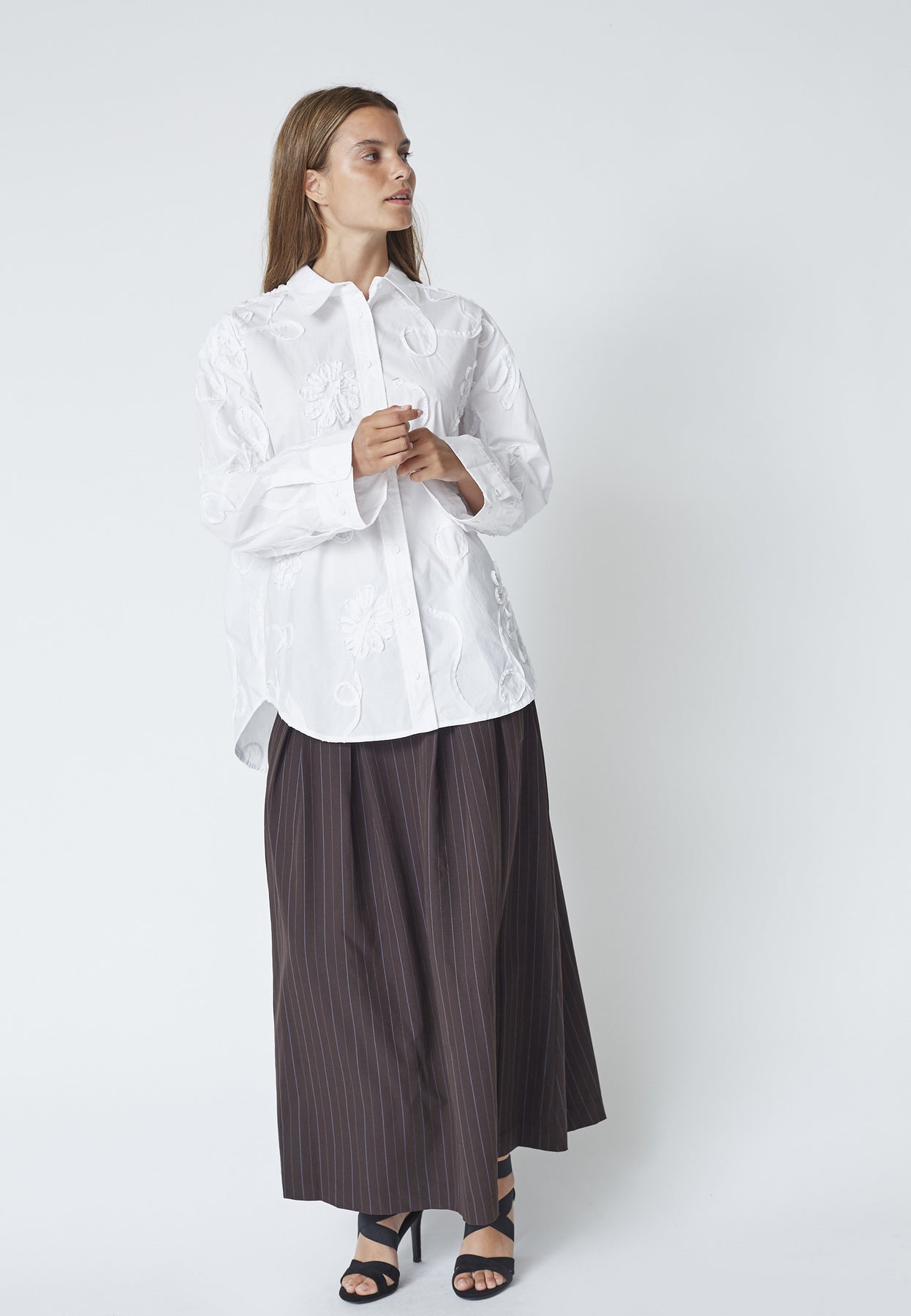 Gjør plass i garderoben til sesongens mest allsidige plagg! XavierCC Flower Shirt fra Co'Couture er en hvit skjorte med et eksklusivt ton-i-ton blomsterbroderi som gir det lille ekstra. En moderne klassiker som passer like godt til jeans og sneakers som under en blazer eller strikkegenser.