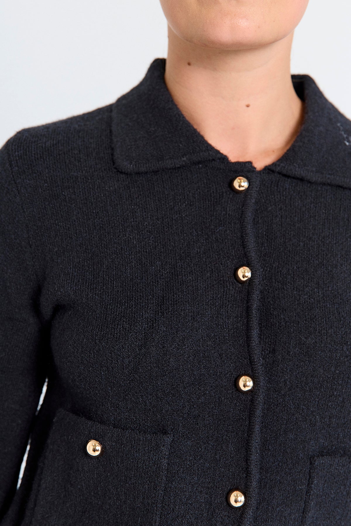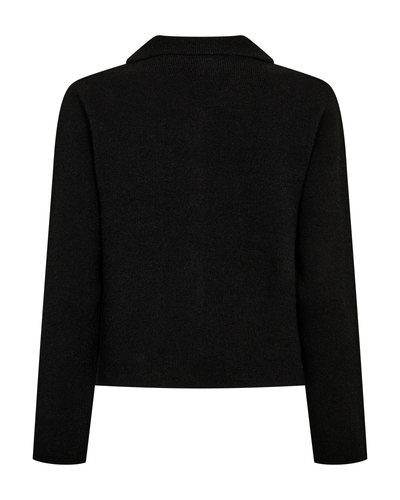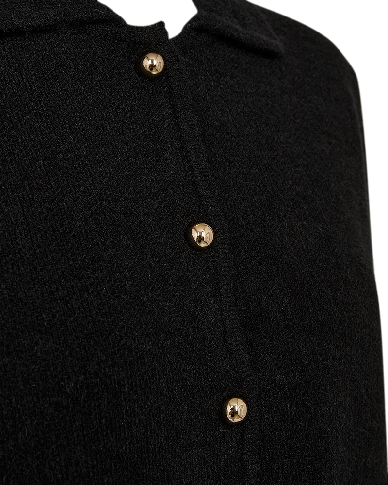 FQZana Cardigan fra Freequent er en elegant og anvendelig sort cardigan med et rent uttrykk og lekre gullknapper som setter prikken over i-en. Den klassiske designen gjør den til et perfekt plagg både til hverdags og mer pyntede anledninger.