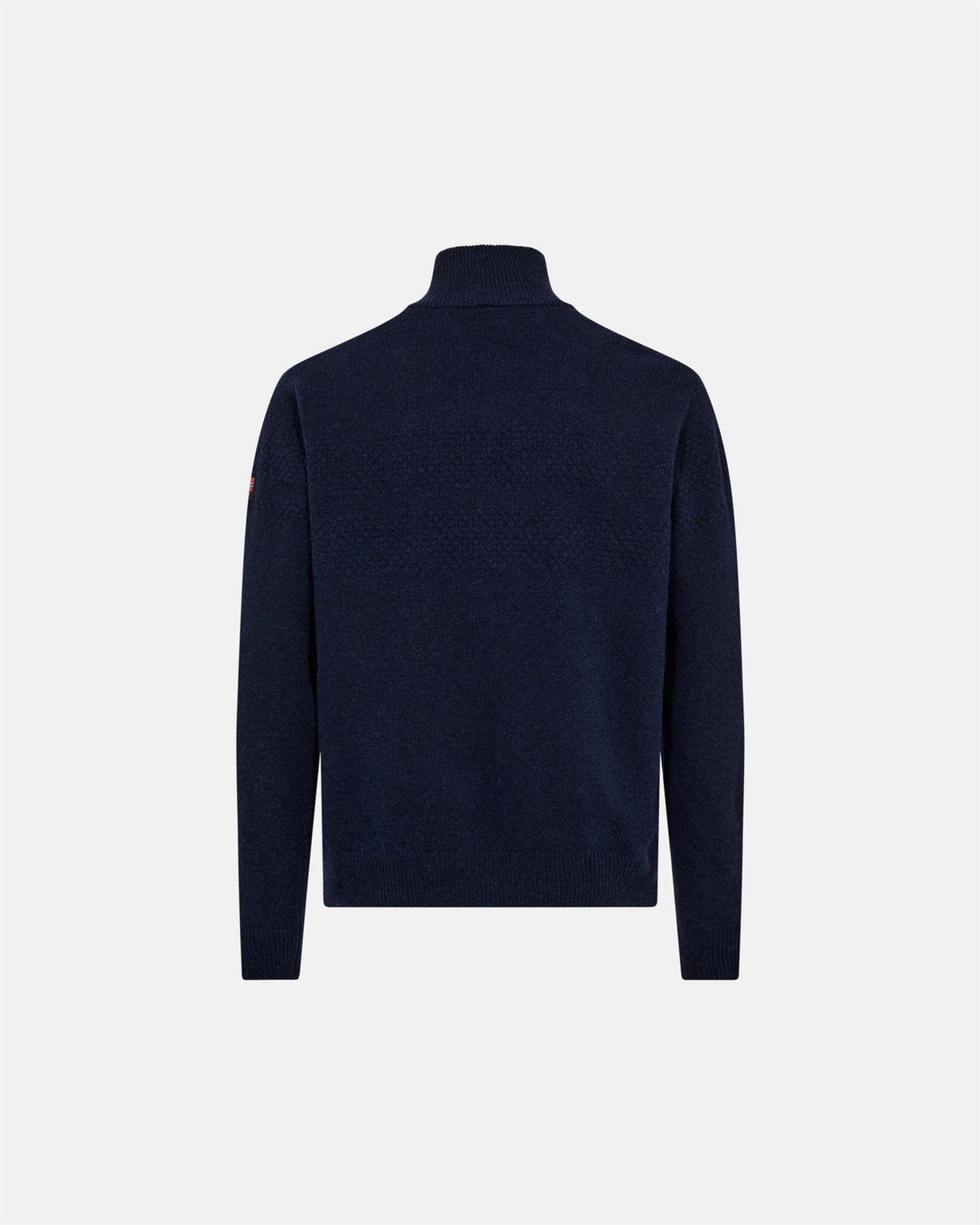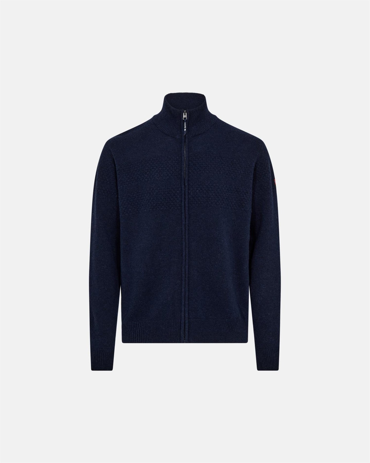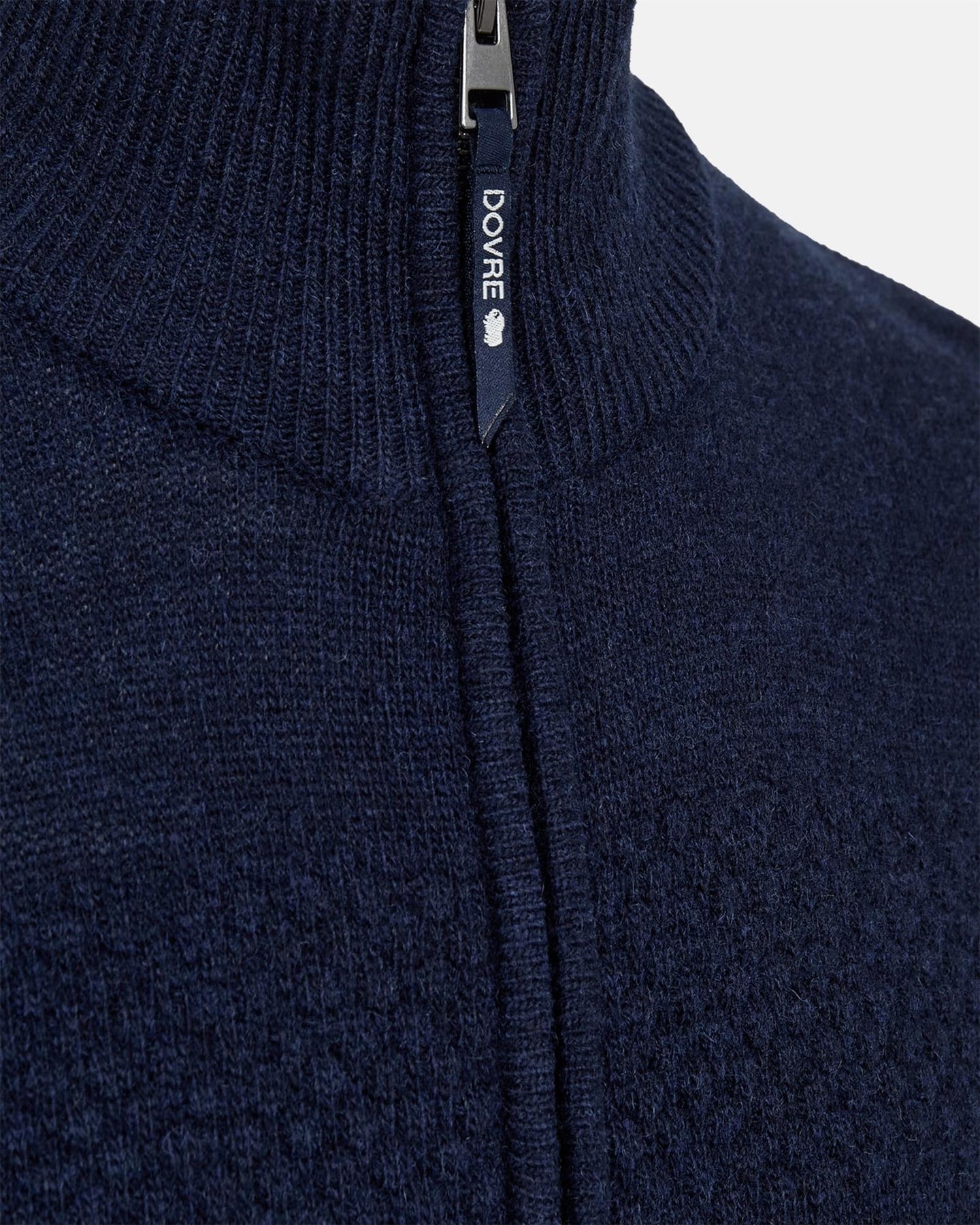 Dovre strikket genser med full glidelås i ull, navy. Komfortabel og varm genser laget av myk ull som passer perfekt til kalde dager. Klassisk design med praktisk glidelås for enkel av- og påkledning. Et tidløst plagg som kombinerer funksjonalitet og stil.