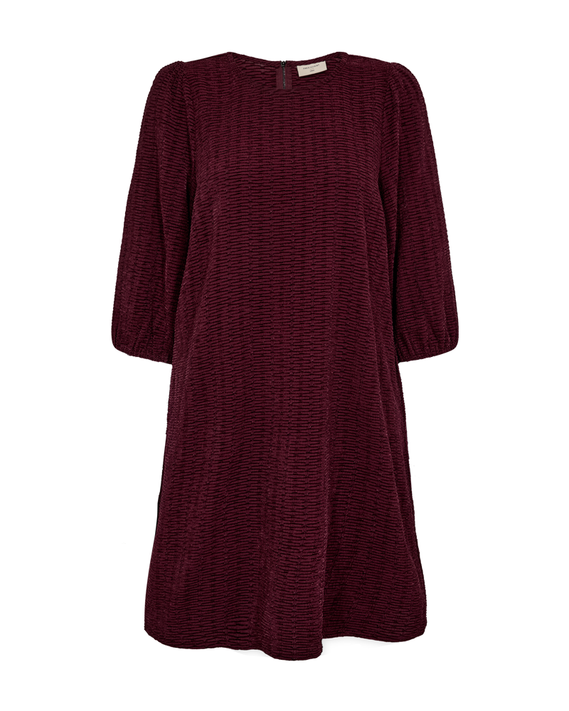 Gi garderoben et løft med den stilfulle og feminine FQmina-kjolen fra Freequent – nå i den varme og sofistikerte fargen Port Royale. Denne burgunderrøde kjolen kombinerer komfort og eleganse i en tidløs design med vakre velourdetaljer og flatterende passform.