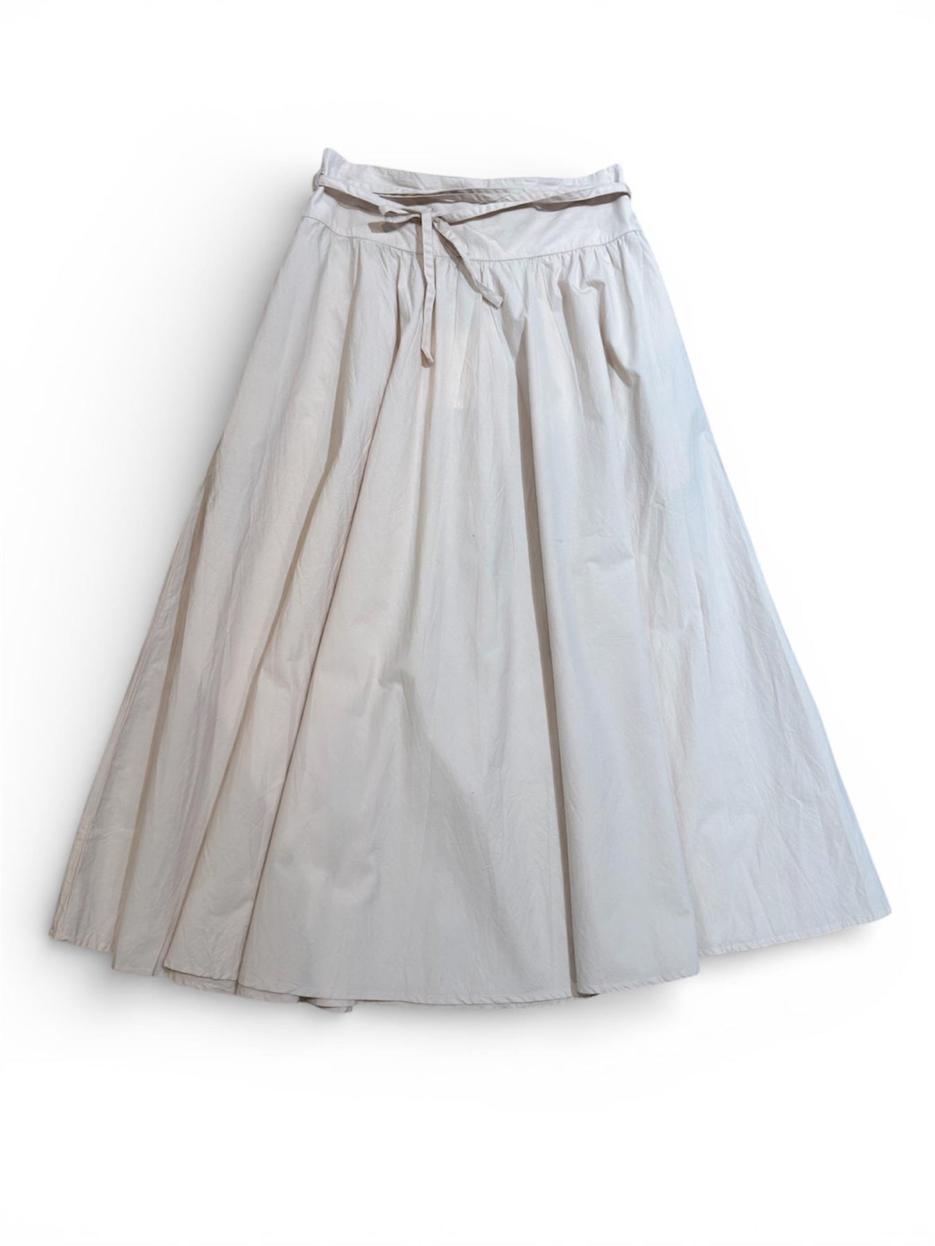 Skjørtet har smocket strikk i ryggen for optimal passform og komfort, samt en avtakbar belte som kan brukes for å fremheve midjen. Det har en flatterende A-form, og midt på leggen-lengde som gir et feminint og tidløst uttrykk.