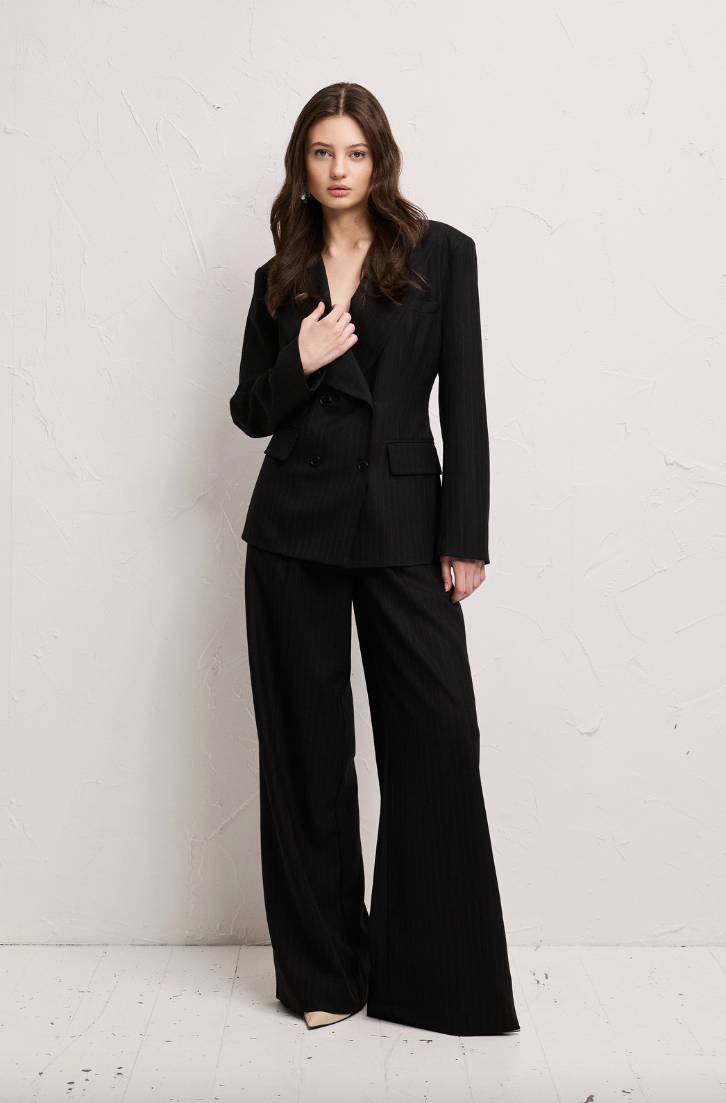 Style med Francis Pinstripe blazer for et komplett dresset uttrykk, eller bruk den alene med en enkel topp for en mer avslappet og sofistikert look.