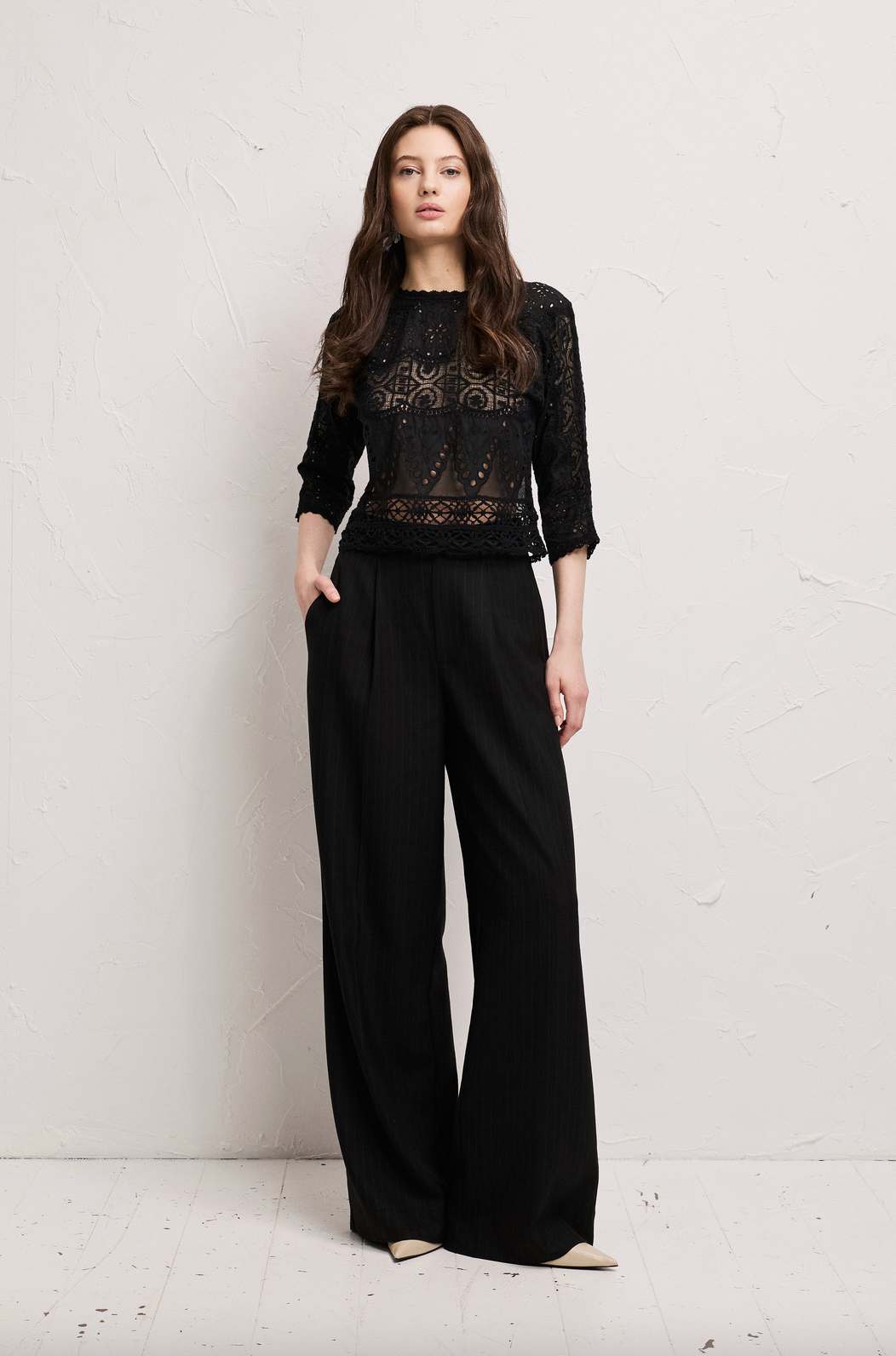 Billie Pinstripe fra Pia Tjelta er buksen som gjør klassisk skreddersøm avslappet og moderne. Den er laget i en elegant ullblanding med pinstriper, har rette, vide ben og sitter høyt i livet for en flatterende og tidløs silhuett.