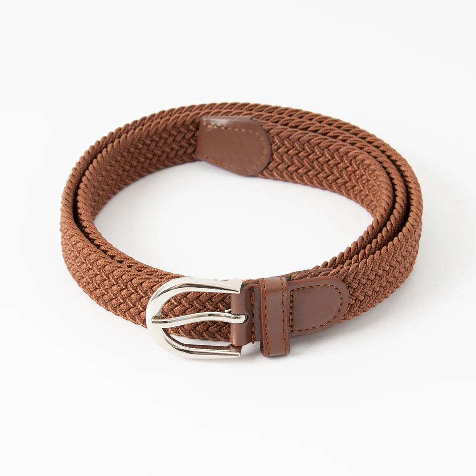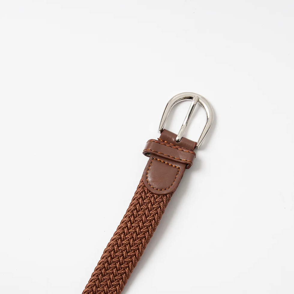 Smalt brunt flettet strikkbelte fra Rosenvinge. Beltet har klassisk fin spenne og er et belte man kan bruket til og på alt. Like fint i midjen over en blazer, kjole eller genser som til et par jeans eller dressbukser.