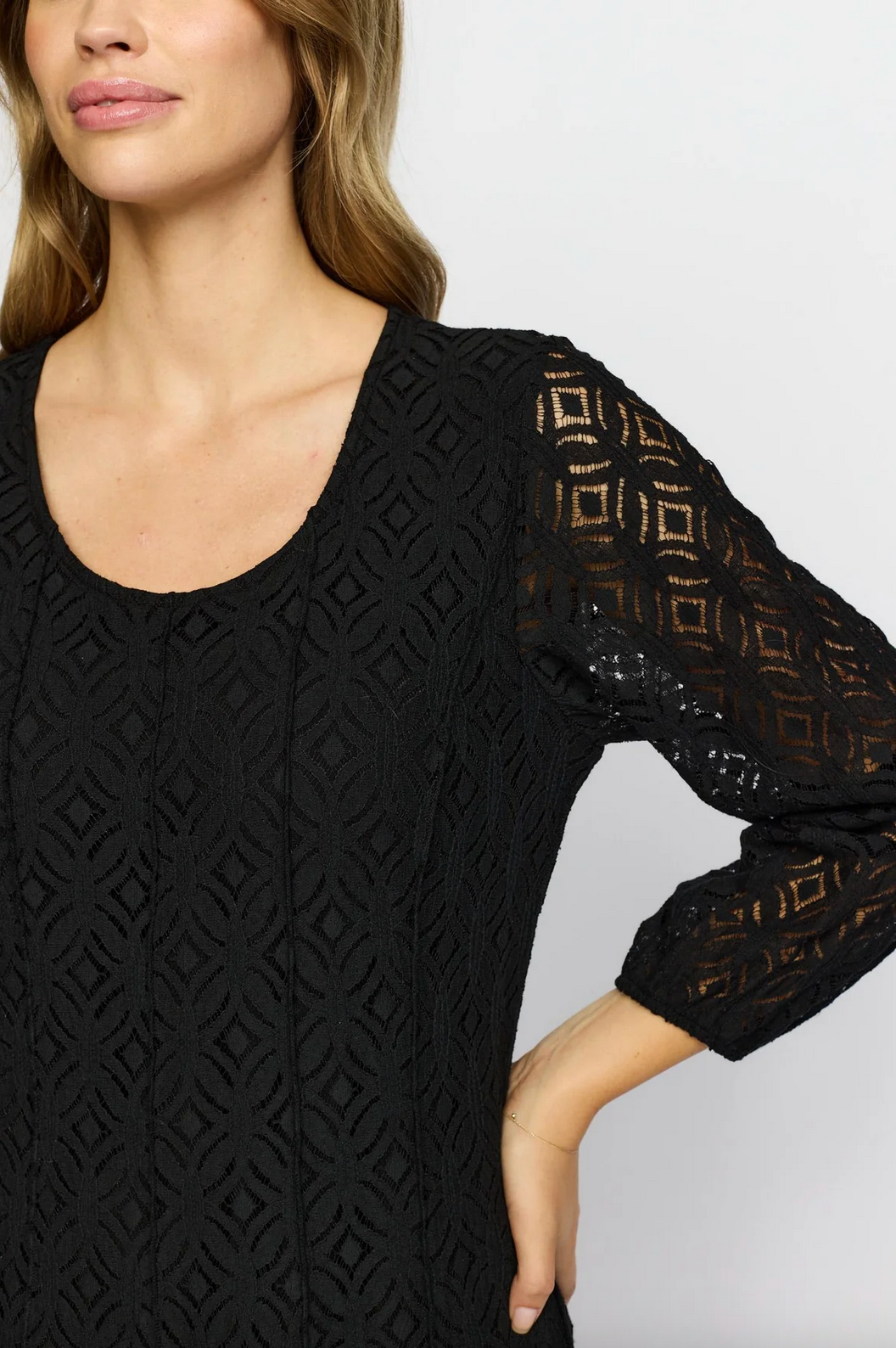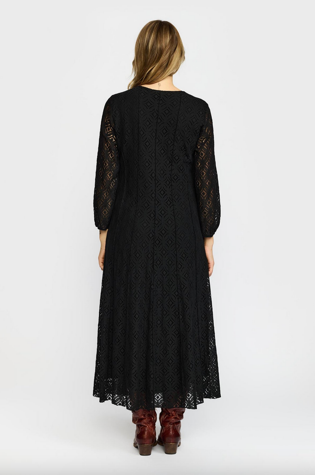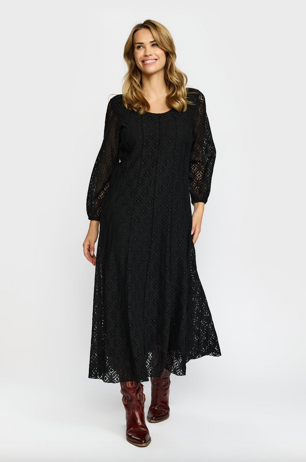 Klassisk lekker fin kjole i sort fra 2-Biz. Kjolen har feminin passform og oppleves som normal i størrelsen. Kjolen har v-hals og 3/4 lange armer.