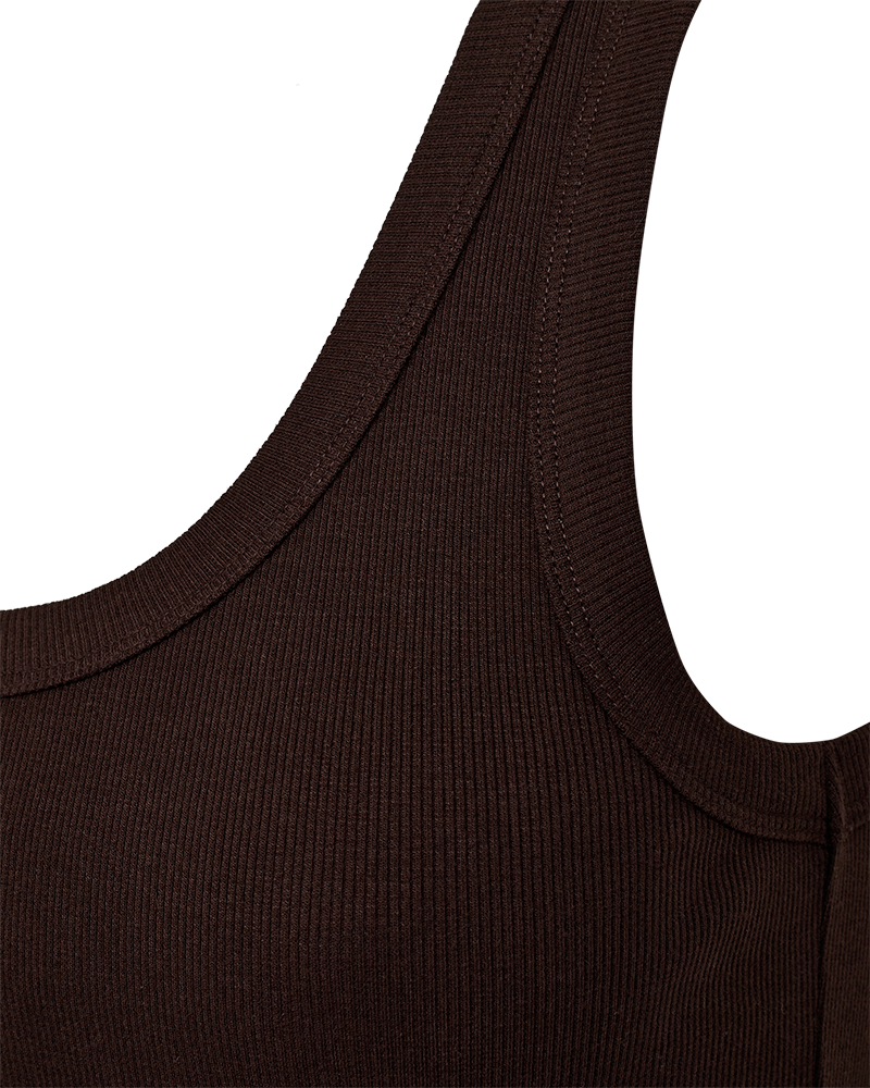 En klassisk og allsidig singlet fra Freequent i varm brunfarge Coffee Bean. FQhi topp passer like godt alene som under skjorte, cardigan eller jakke, og er et perfekt basisplagg i garderoben.