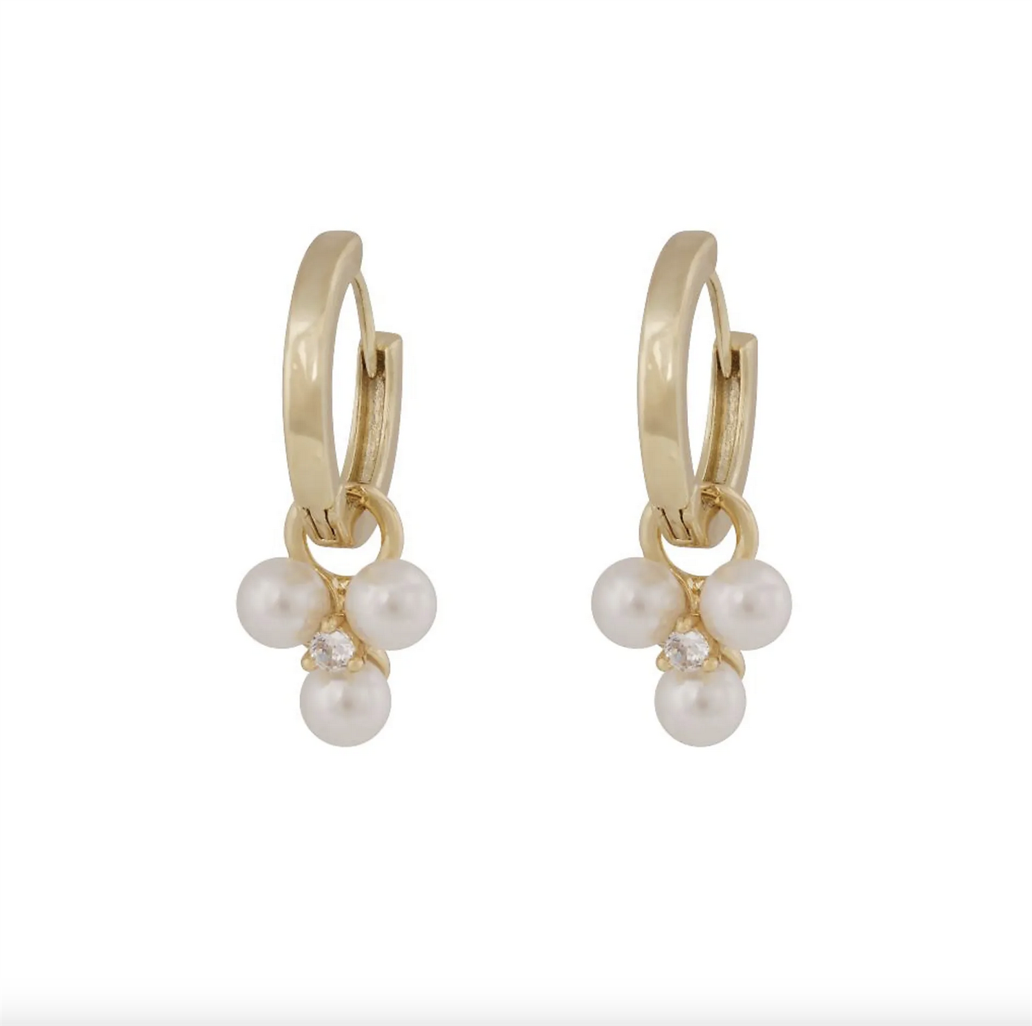 Øreringer med tre perler, elegant design med et klassisk uttrykk.