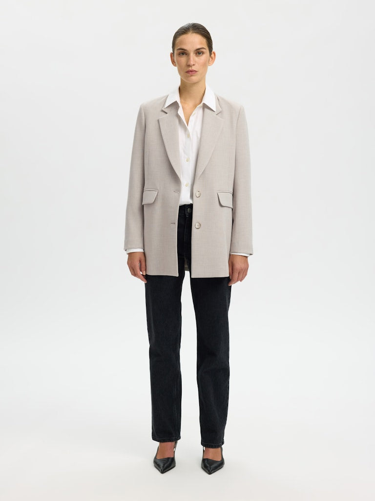 Selected Femme SLFrita LS Relaxed Blazer – island fossil melange | Klassisk beige blazer med moderne passform